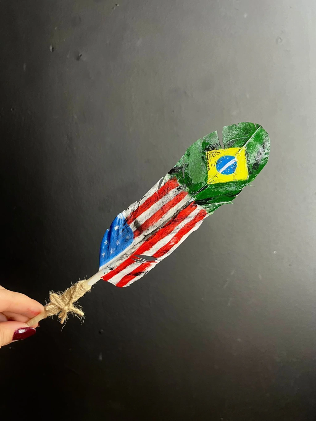 Para maior durabilidade, cada pena recebe duas camadas de verniz, garantindo impermeabilização e proteção da cor. Por ser um produto natural e feito à mão, podem ocorrer pequenas variações em relação às imagens, tornando cada peça especial.